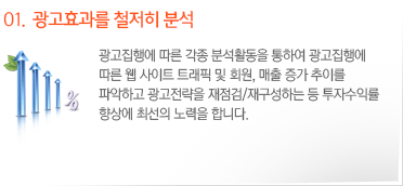 1. 01.±¤°íÈ¿°ú¸¦ öÀúÈ÷ ºÐ¼®  - ±¤°íÁýÇà¿¡ µû¸¥ °¢Á¾ ºÐ¼®È°µ¿À» ÅëÇÏ¿© ±¤°íÁýÇà¿¡ µû¸¥ À¥ »çÀÌÆ® Æ®·¡ÇÈ ¹× ȸ¿ø, ¸ÅÃâ Áõ°¡ ÃßÀ̸¦ ÆÄ¾ÇÇÏ°í ±¤°íÀü·«À» ÀçÁ¡°Ë/À籸¼ºÇÏ´Â µî ÅõÀÚ¼öÀÍ·ü Çâ»ó¿¡ ÃÖ¼±ÀÇ ³ë·ÂÀ» ÇÕ´Ï´Ù.